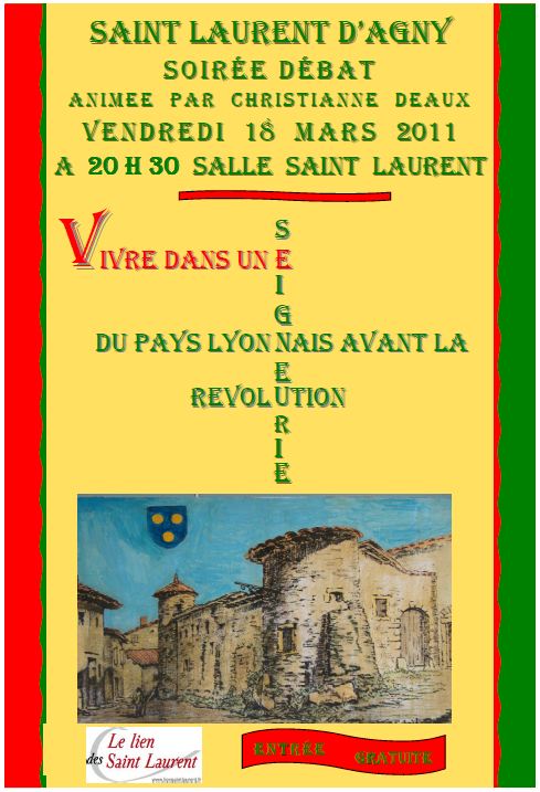 Cette soirée présentée par Madame Christiane DEAUX de Millery aura pour thème : La vie des Seigneurs et Seigneuries en Pays Lyonnais.
