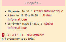 Au delà des 3 premiers événements la liste est paginée (un lien permet de tous les afficher).