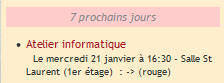 - la liste des événements des 7 prochains jours