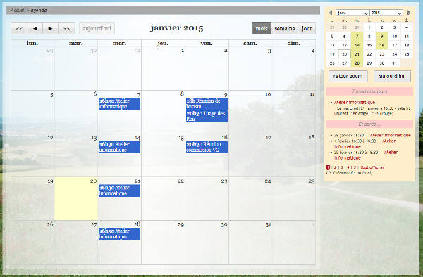 Comme par le passé, l’agenda est toujours affiché dans le haut de la colonne de droite de la “page d’accueil” du site...