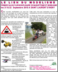 Nous souhaitons que ce 1er salon du Modélisme devienne la réussite non seulement de votre association mais aussi de tout le village, afin que, comme pour le vide grenier, Saint Laurent d’Agny soit connu comme un lieu de référence pour cette activité