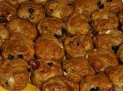 Mélanger tous les ingrédients secs, puis le chèvre coupé en petits dés et les fruits rouges.