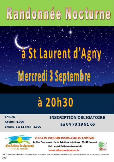 Le lieu exact du rendez-vous vous sera communiqué lors de votre réservation à l’Office de Tourisme au 04 78 19 91 65 (mardi au samedi 10h à 12h et mardi au vendredi 14h à 18h)