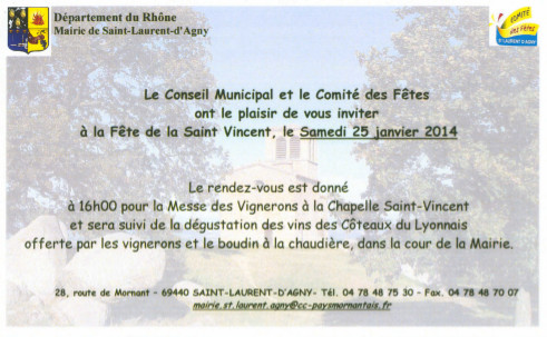 Documents joints 1 document Invitation à la fête de la Saint Vincent Télécharger 19 janvier 2014 - PDF - 1004.1 kio