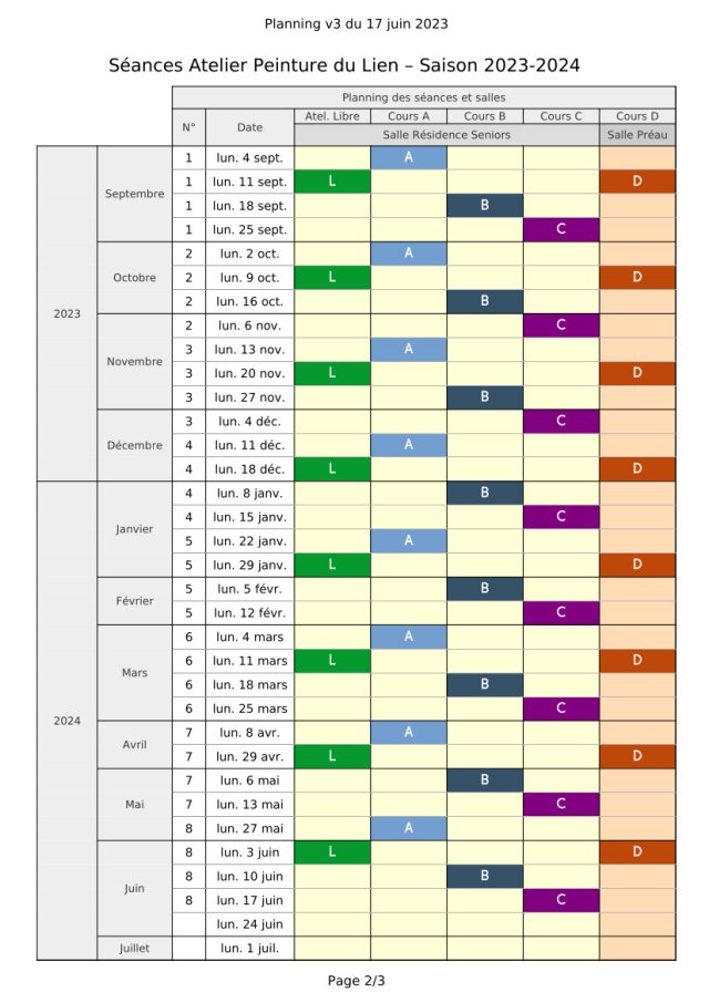 - Atelier libre et cours A, B et C :