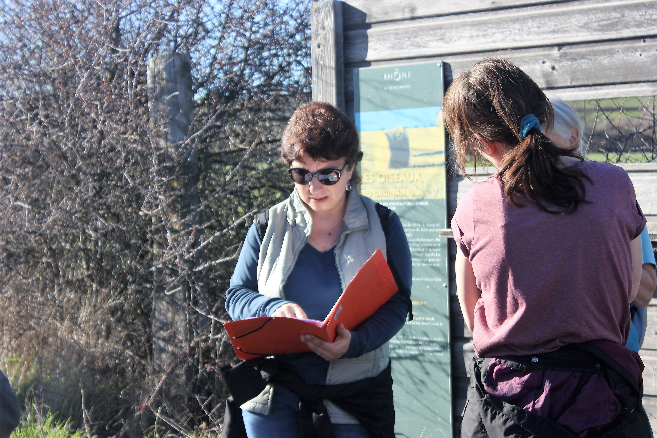 Arrêt au poste d’observation aménagé par le Conservatoire des Espaces Naturels Rhône Alpes (CENRA) pour expliquer que nous nous trouvons dans l’Espace Naturel Sensible du Plateau Mornantais. Ce site est remarquable par la diversité des paysages (prairies, landes, zones humides) qui est propice à la diversité des espèces faunistiques et florifères. Parmi les espèces emblématiques qui peuvent être observées dans le bocage de Berthoud au moment de la nidification : l’œdicnème criard, le courlis cendré... Le busard cendré fait l’objet, dans cette zone, d’actions de protection.